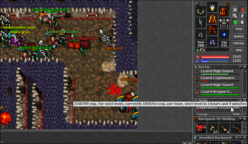 My own record exp/h on lizard city (220 lvl) (premmy + bewitched event)